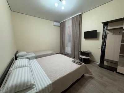 Гостевой дом предлагает четыре комфортабельные комнаты площадью 20 кв м каждая. В каждой комнате есть собственный санузел, wi-fi, smart tv с кабельным телевидением, кондиционер и